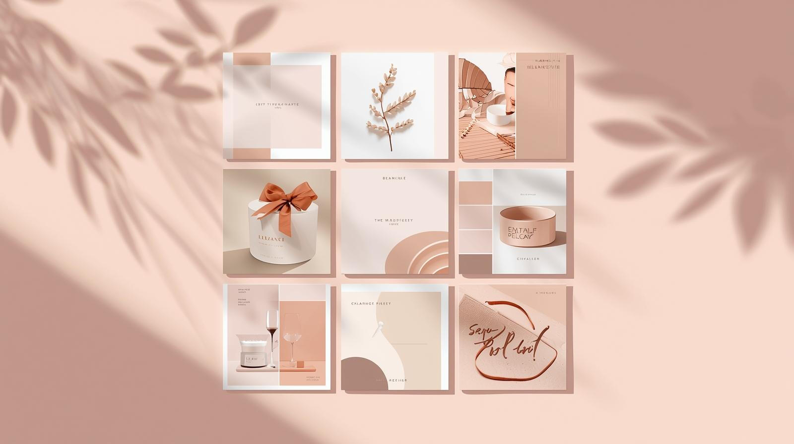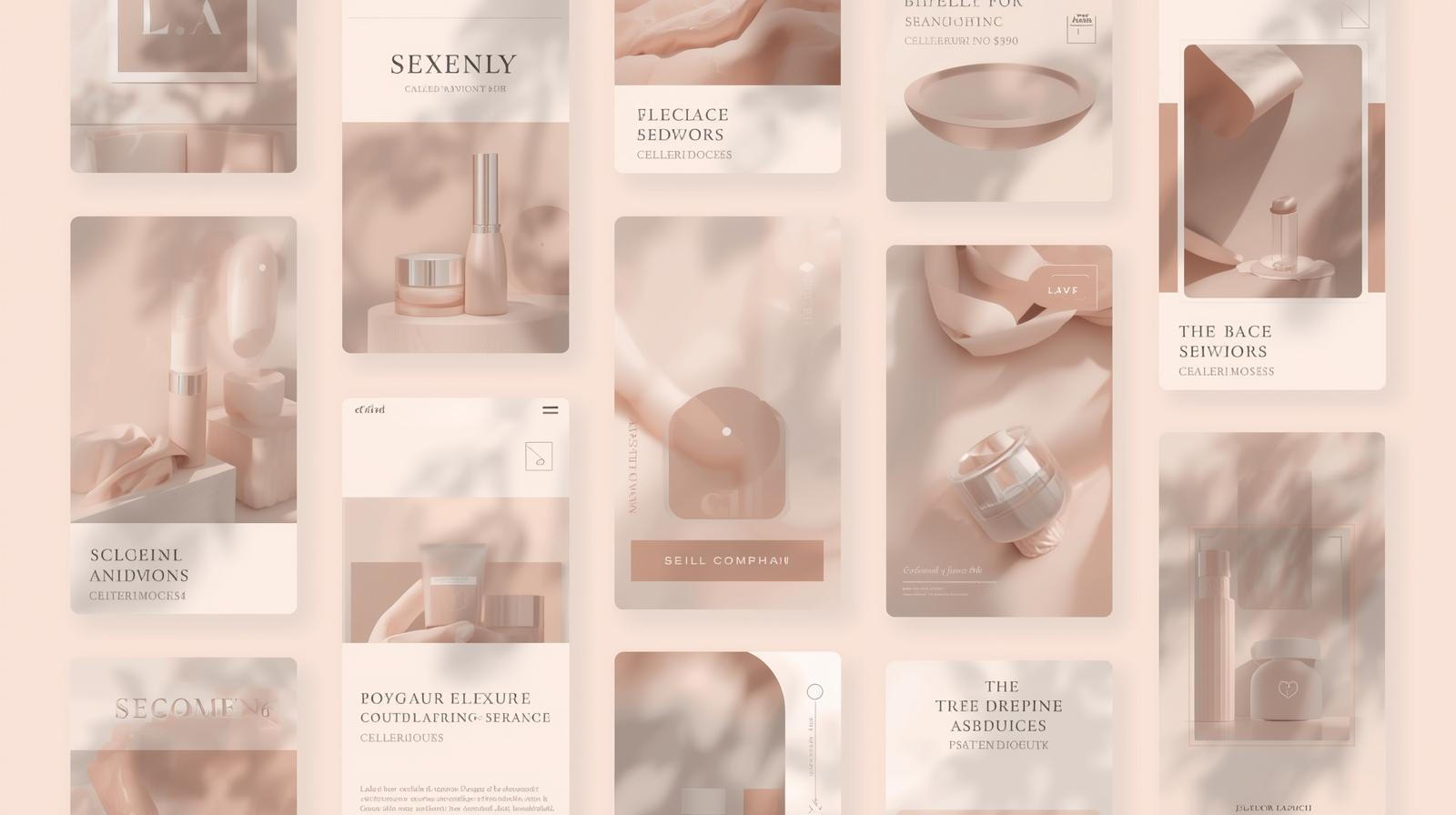 A blend of soft shadows, floating card layouts, beige and blush gradients, and clean editorial spacing to create a luxury digital identity.