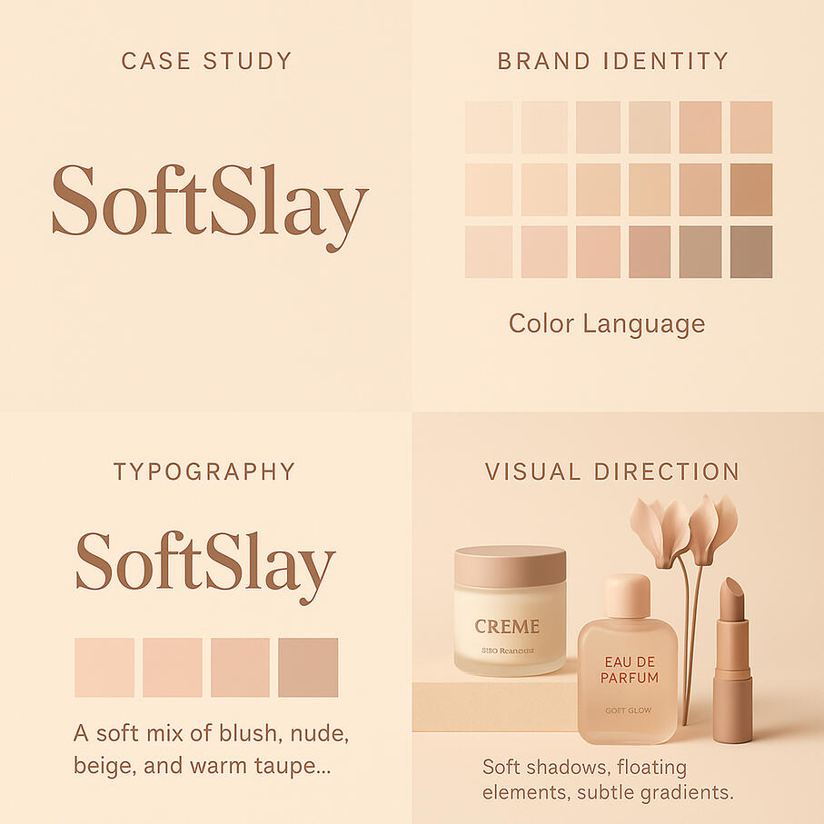 SoftSlay created a premium digital aesthetic using AI-driven workflows that maintain cohesion, soft shadows, and elegant composition—perfect for beauty and lifestyle brands.